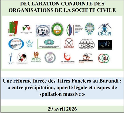 Pour plus de détails, lire l’intégralité de la déclaration….DECLARATION CONJOINTE DES OSC sur les Titres Fonciers Sécurisés au Burundi